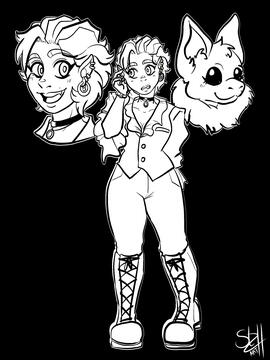 Defined line art with most of the details. Flat coloring with just black and white.